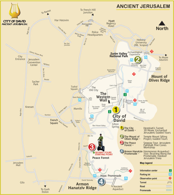A modern map showing the City of David is southeast of the supposed Temple Mount.