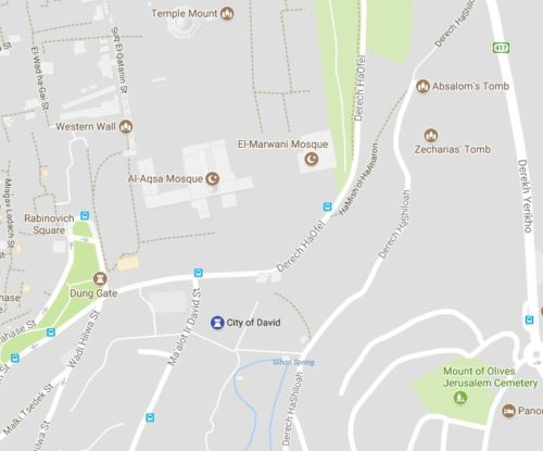 Google Map showing the City of David (or Zion), far from today’s Temple Mount.